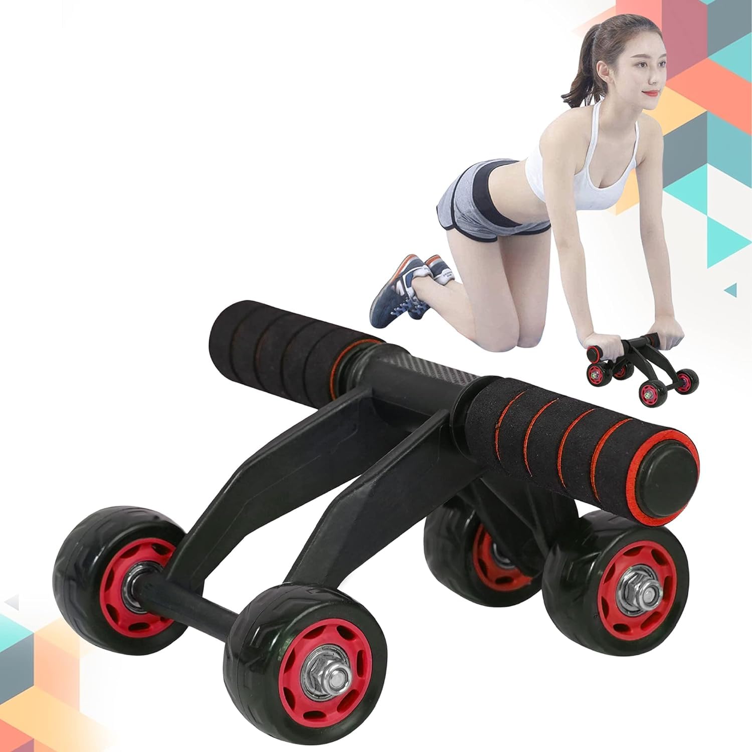 Multi-Functional 4-Wheel Ab Roller & Push-Up Bar – Portable Fitness Trainer