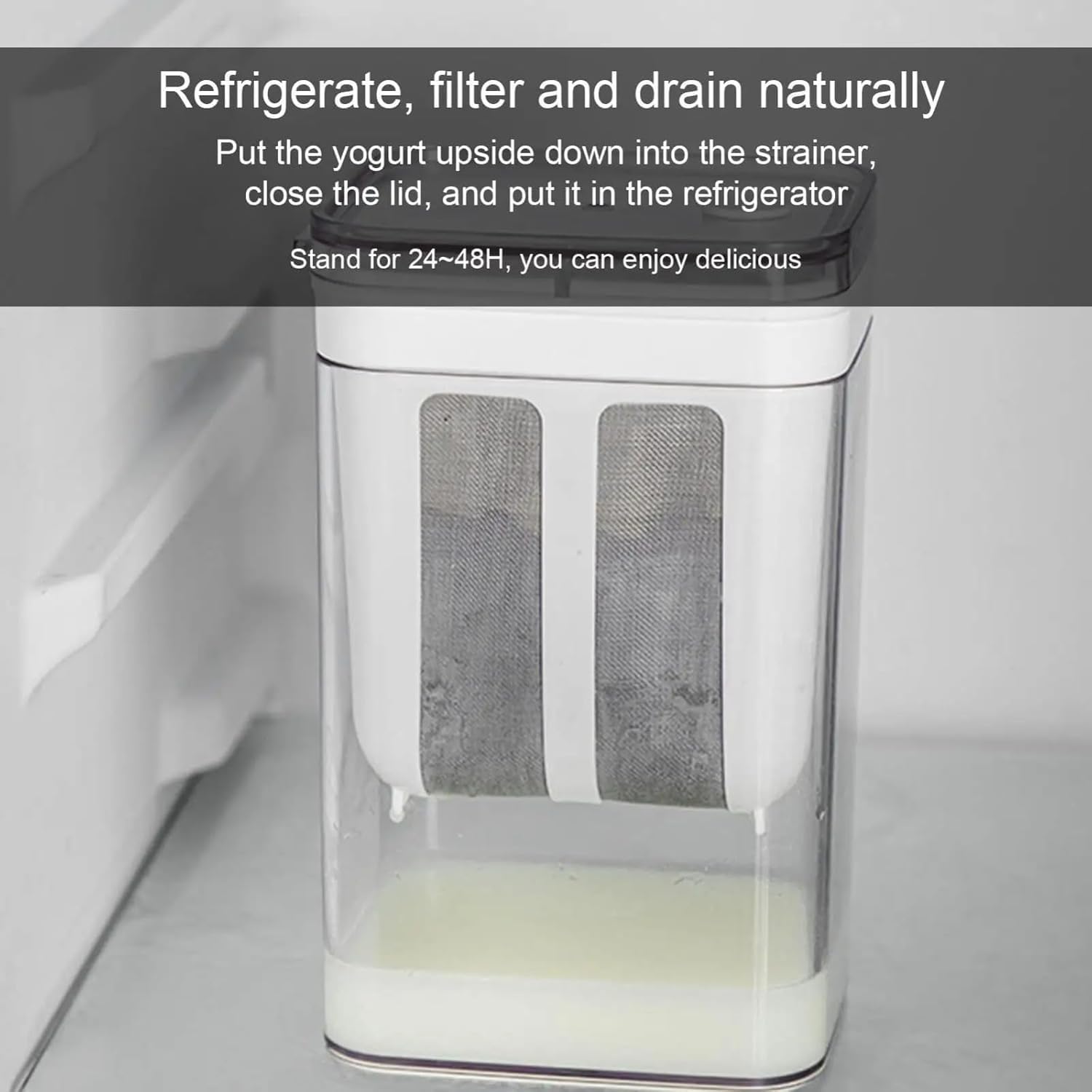 🥛 Fine Mesh Filtration: Precision fine mesh removes excess whey efficiently for smooth, creamy yogurt.